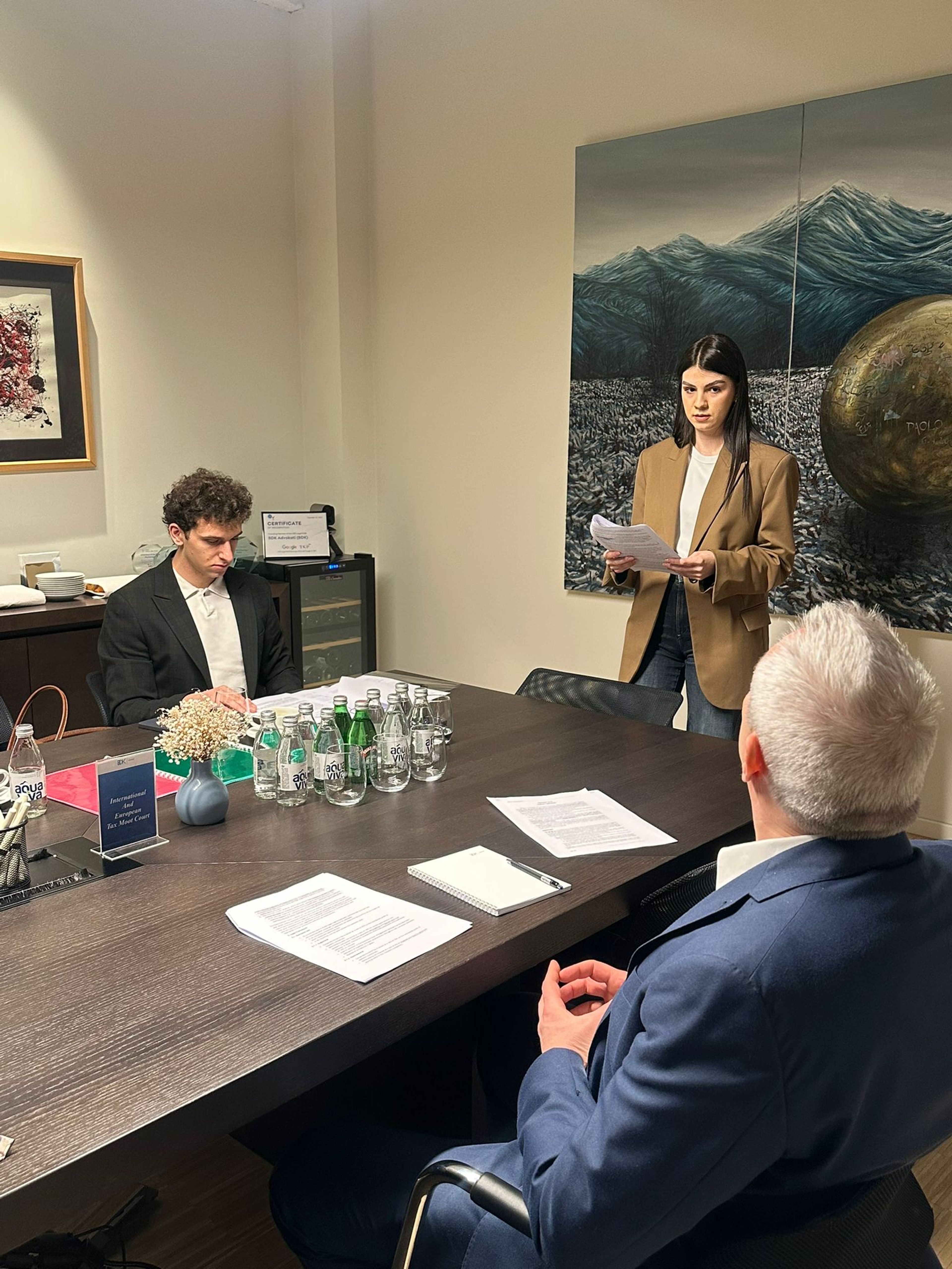 Tomislav Popović, counsel and head of our tax practice, and Ana Perišić, junior associate, met with Katarina Jaraković and Aleksa Manić, law students at the University of Belgrade Faculty of Law and members of this year's team competing at the International and European Tax Moot Court to be held at the University of Leuven. The team rehearsed the presentation of their oral pleadings on an interesting and complex international tax law case involving the interpretation of double tax treaties. Katarina and Aleksa received feedback from our colleagues on the substantive tax law arguments, as well as on their presentation style. We are pleased to say that Katarina and Aleksa are ready for the competition. We wish them every success and a great time in Leuven, Belgium!