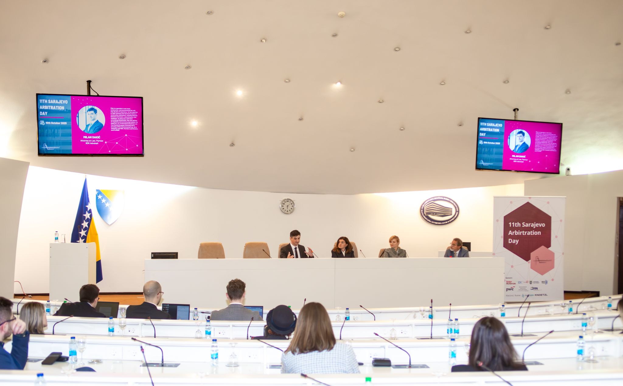 Our partner Milan Dakić was one of panellist at 11th Sarajevo Arbitration Day, which took place at the Parliamentary Assembly of Bosnia and Herzegovina on 10 October 2025. In a lively discussion between the panellists and the audience, Milan discussed various topics, such as disruption and delay claims, contractually agreed time bars, and environmental compliance and sustainability trends within FIDIC framework.